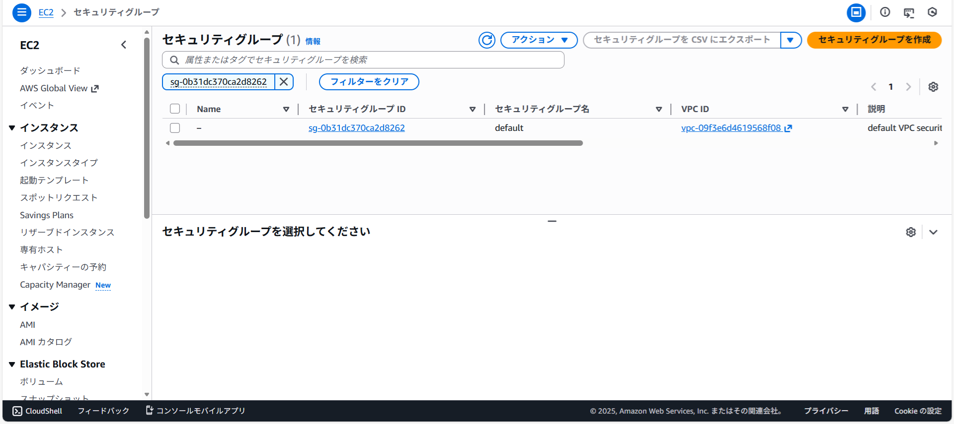 セキュリティグループのリンクをクリックします。
