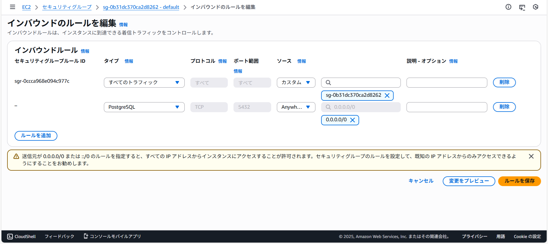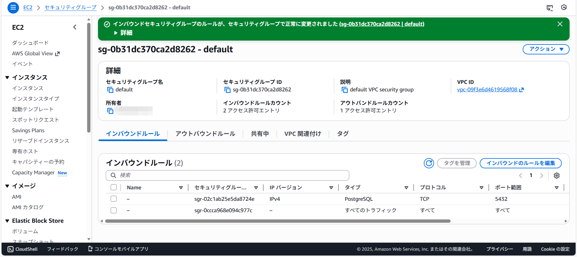 インバウンドルールが追加されました。