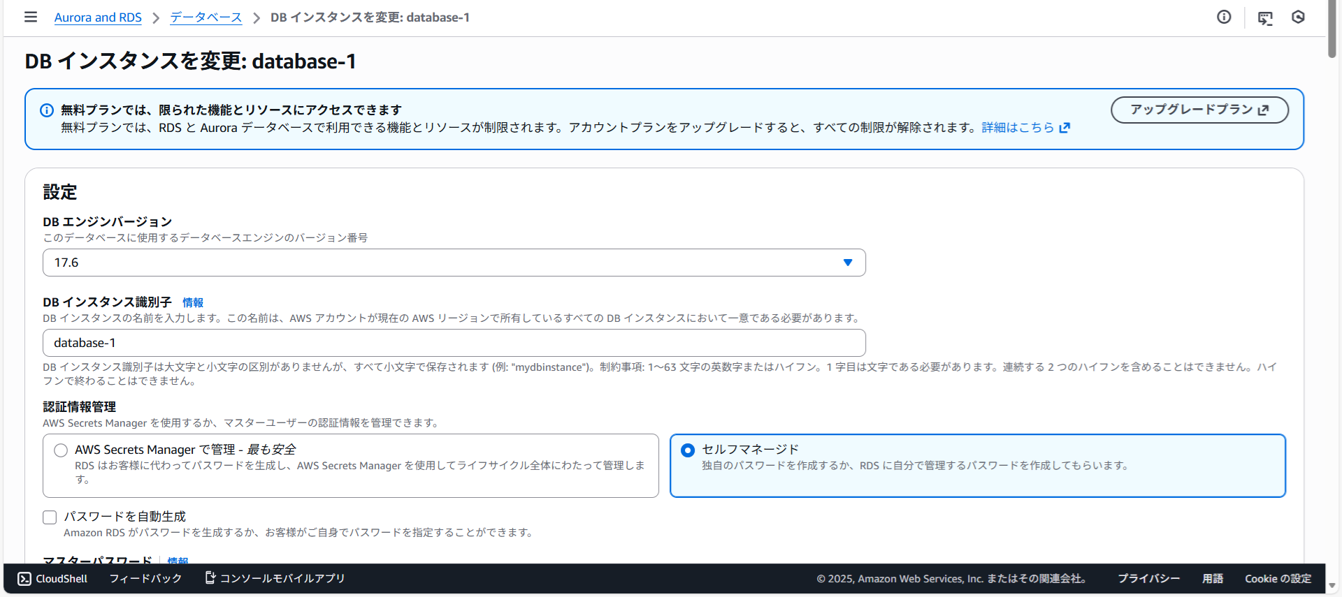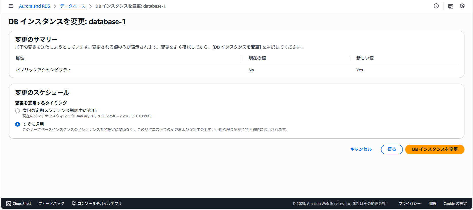 すぐに適用を選択しDBインスタンスを変更をクリックします。