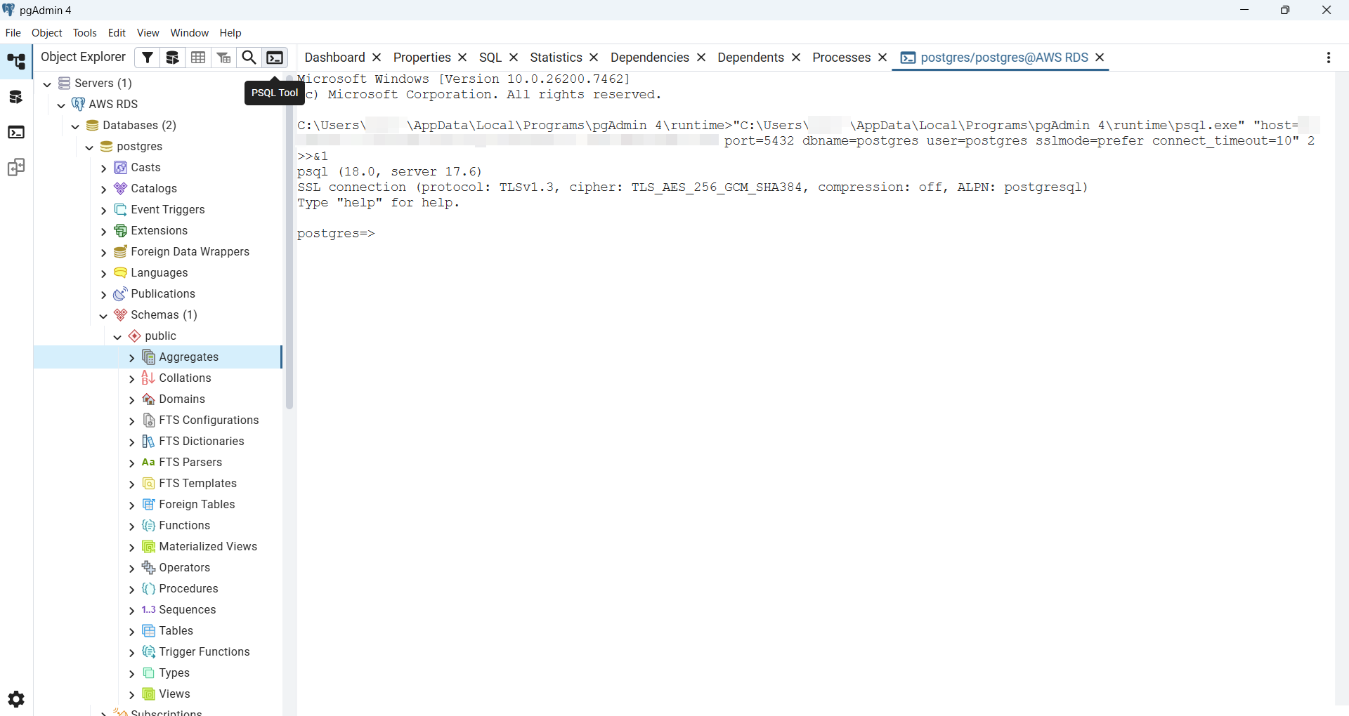 PSQL Toolをクリックします。