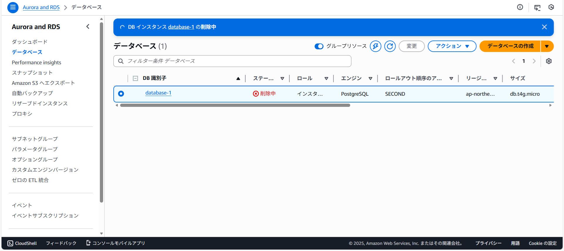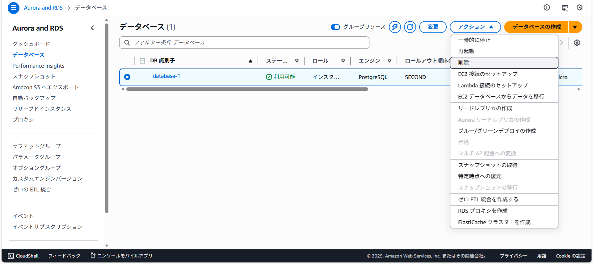 RDSの削除