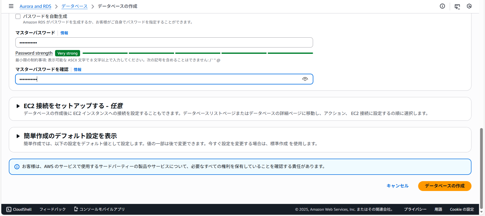 マスターパスワードとマスターパスワードを確認を入力しデータベースの作成をクリックします。
