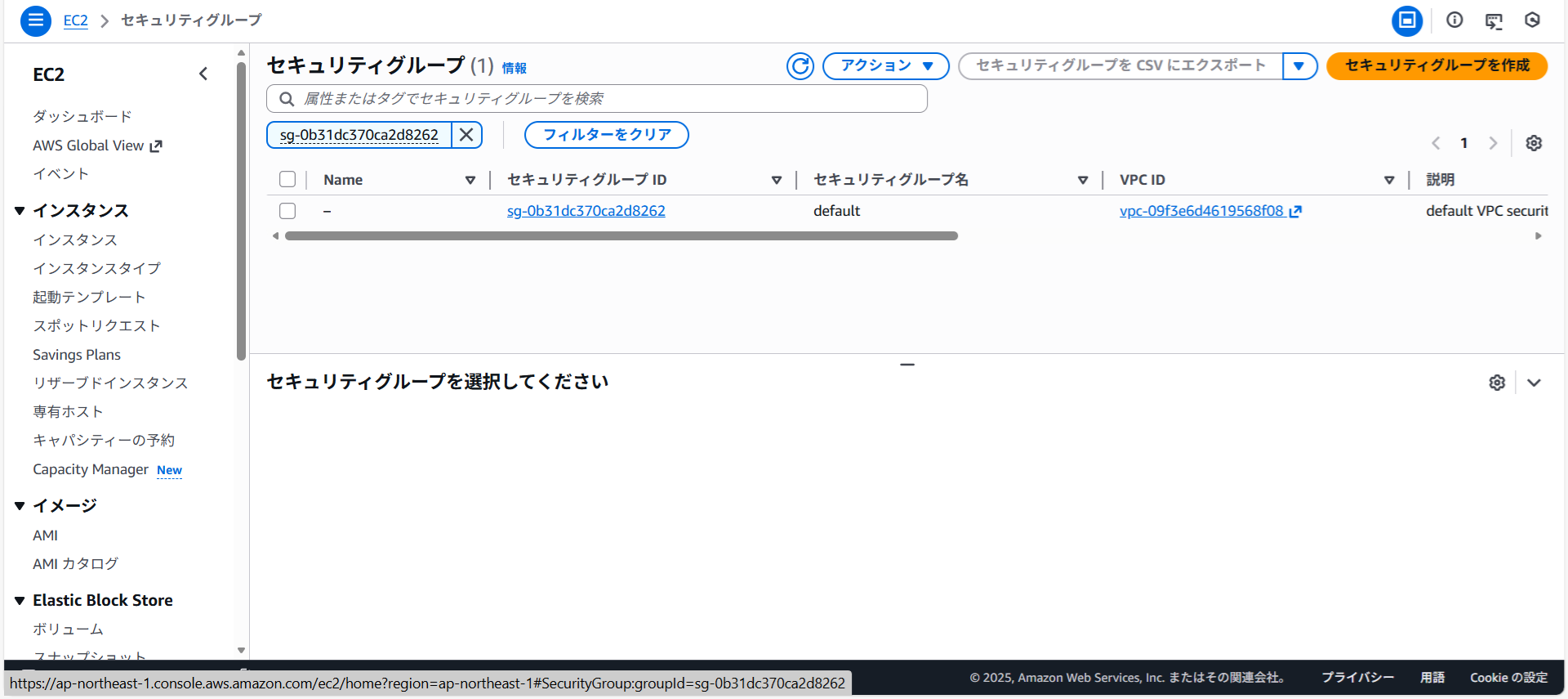 セキュリティグループIDをクリックし、インバウンドのルールを編集をクリックします。