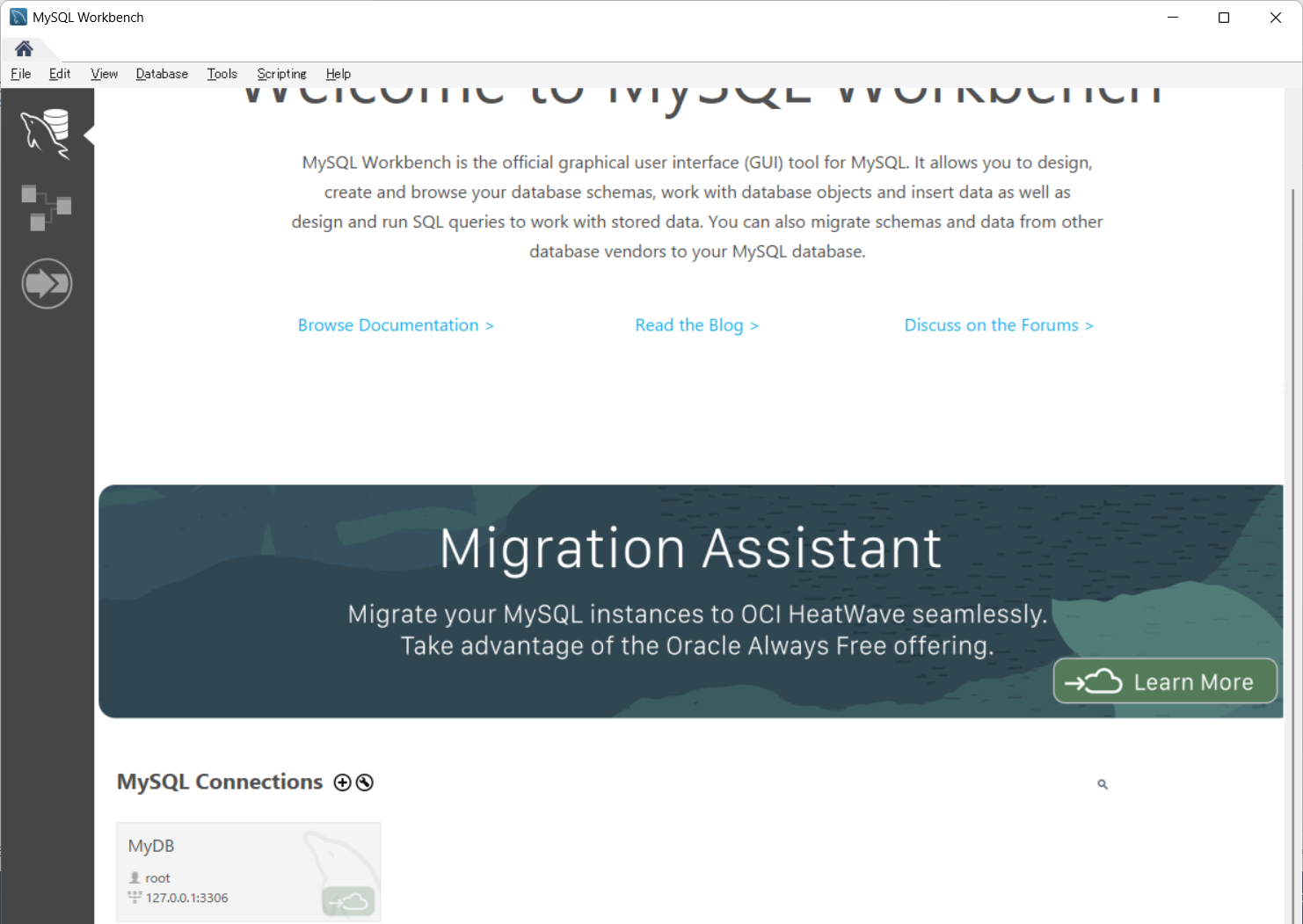 MySQL Workbenchを起動します。