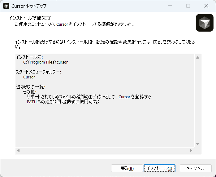インストールをクリックします。