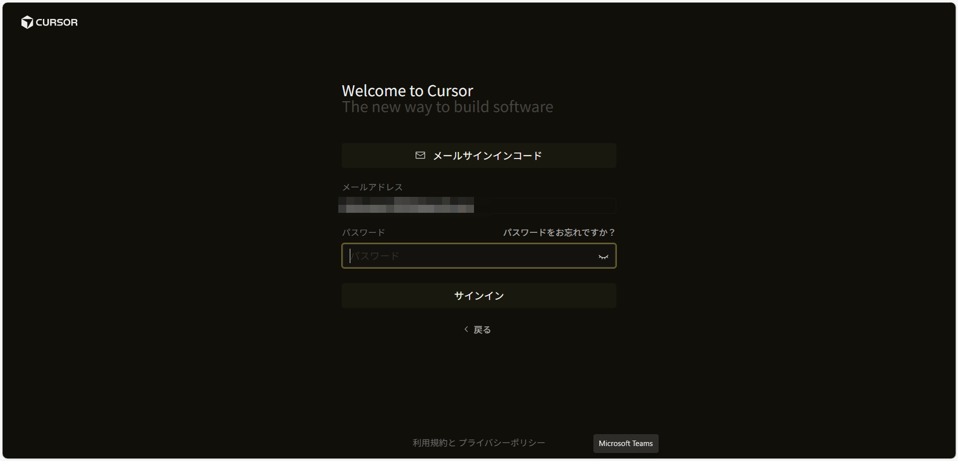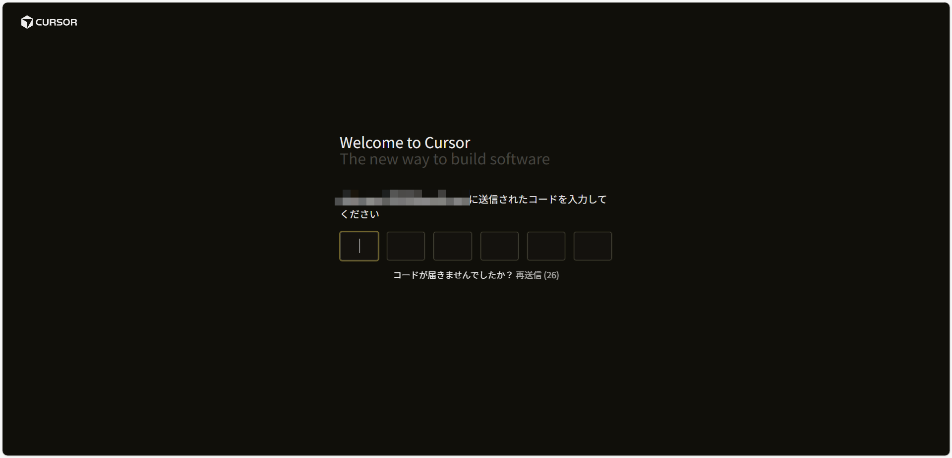 入力したメールアドレスに届いたコードを入力します。