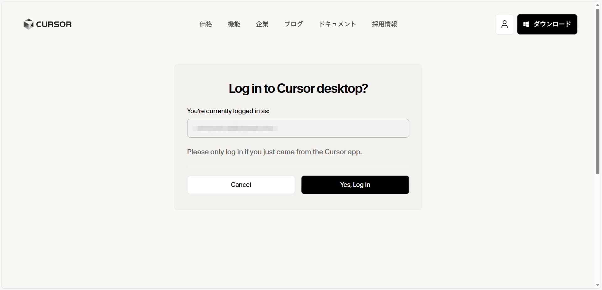 Yes, Log Inをクリックします。