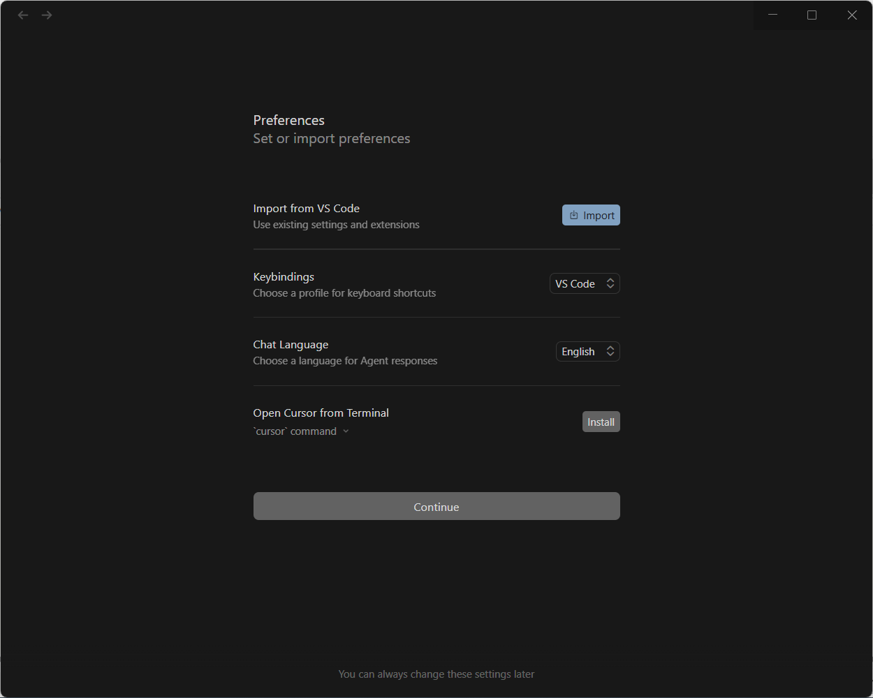 Continueをクリックします。