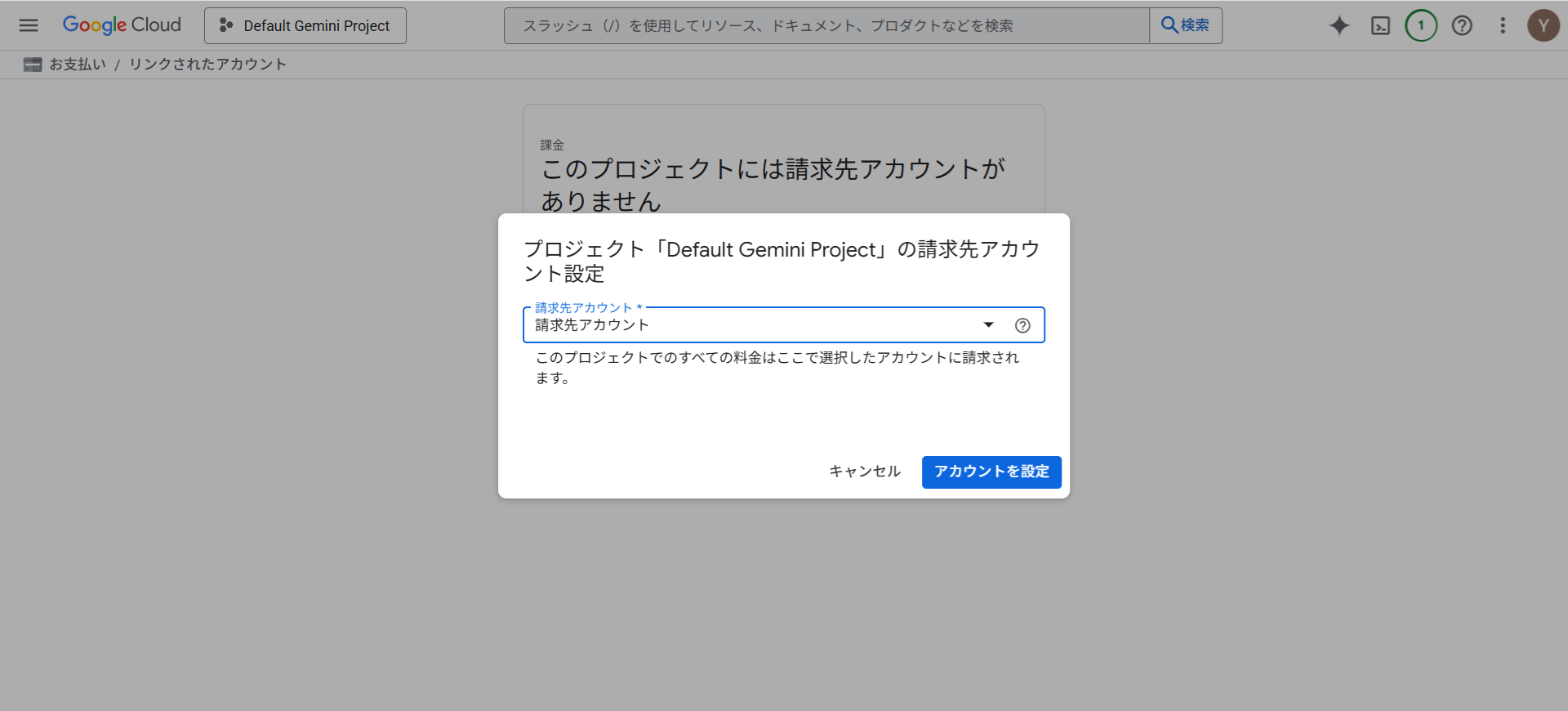 課金情報を設定し画像生成を実行したところ正常に動作しました。