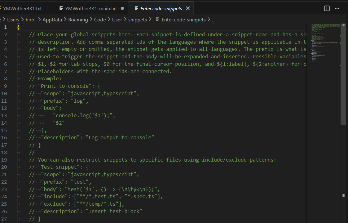 Enter.code-snippers (global) を選択しEnterを押します。